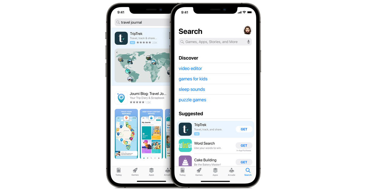 - 관계 있는 앱을 앱스토어에서 검색할 경우,서치 애드 서비스를 이용하고 있는 앱을 검색 결과 상단에 노출 시켜 주는 광고 서비스.