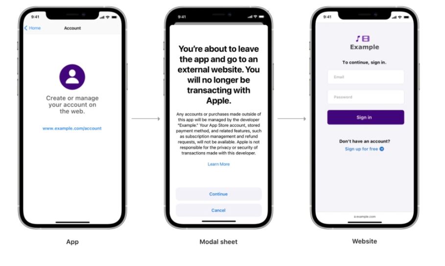 연결 되는 웹페이지에서 제공 할 수 있는 정보와 수행 할 수 있는 액션 또한 제한 된다고. 인앱 결제가 아닌 앱 외부에서 결제시 제공 되는 할인 등의 내용은 당연히 안내 할 수 없다고.